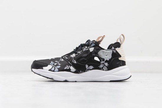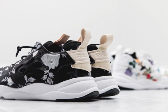 For a few seasons we have watched the rise of the classic Reebok Insta Pump Fury. Especially in fashion circles the sneaker, which originally released in 1994, has become a popular sight. Recently Reebok has updated the silhouette and presents the new Reebok Furylite – a fantastic modern take on the iconic sneaker. For Spring 2015 the Reebok Furylite is presented in two floral colorways. Coming in black and white, both versions of the sneaker feature floral all-over patterns. You can purchase the sneakers now from Wish Atlanta.
